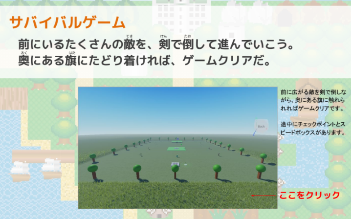 Robloxクリエイトコースコースは、ベーシックコースの修了者や小学3年生以上です。このコースは生徒が主導でプロジェクトに取り組むアウトプット中心の授業を提供します。過去の学びを活かし、独自の作品制作と発表を繰り返すことで、創造性、主体性、自己肯定感などの非認知スキルを大いに伸ばすことを目指します。自立した学習者を育てるためのコースです。
